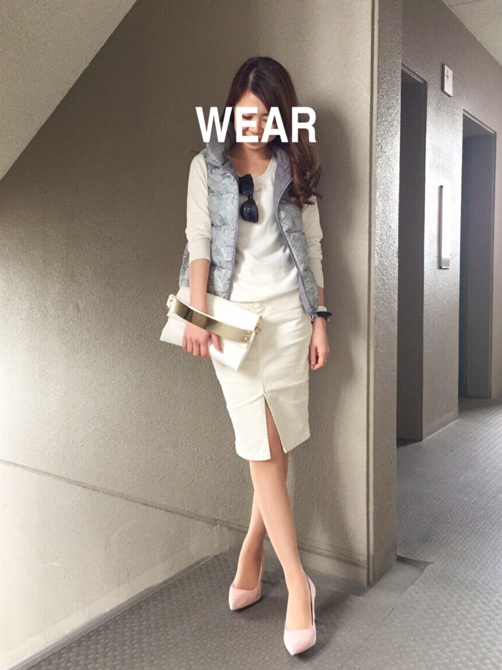 休日コーデ♡ 暖かかったので去年のダウンベストを ひっぱりだしてきてコーディネート( ・ㅂ・)و ̑̑ スニーカーにするか迷い… あえてのパンプス*Ü*