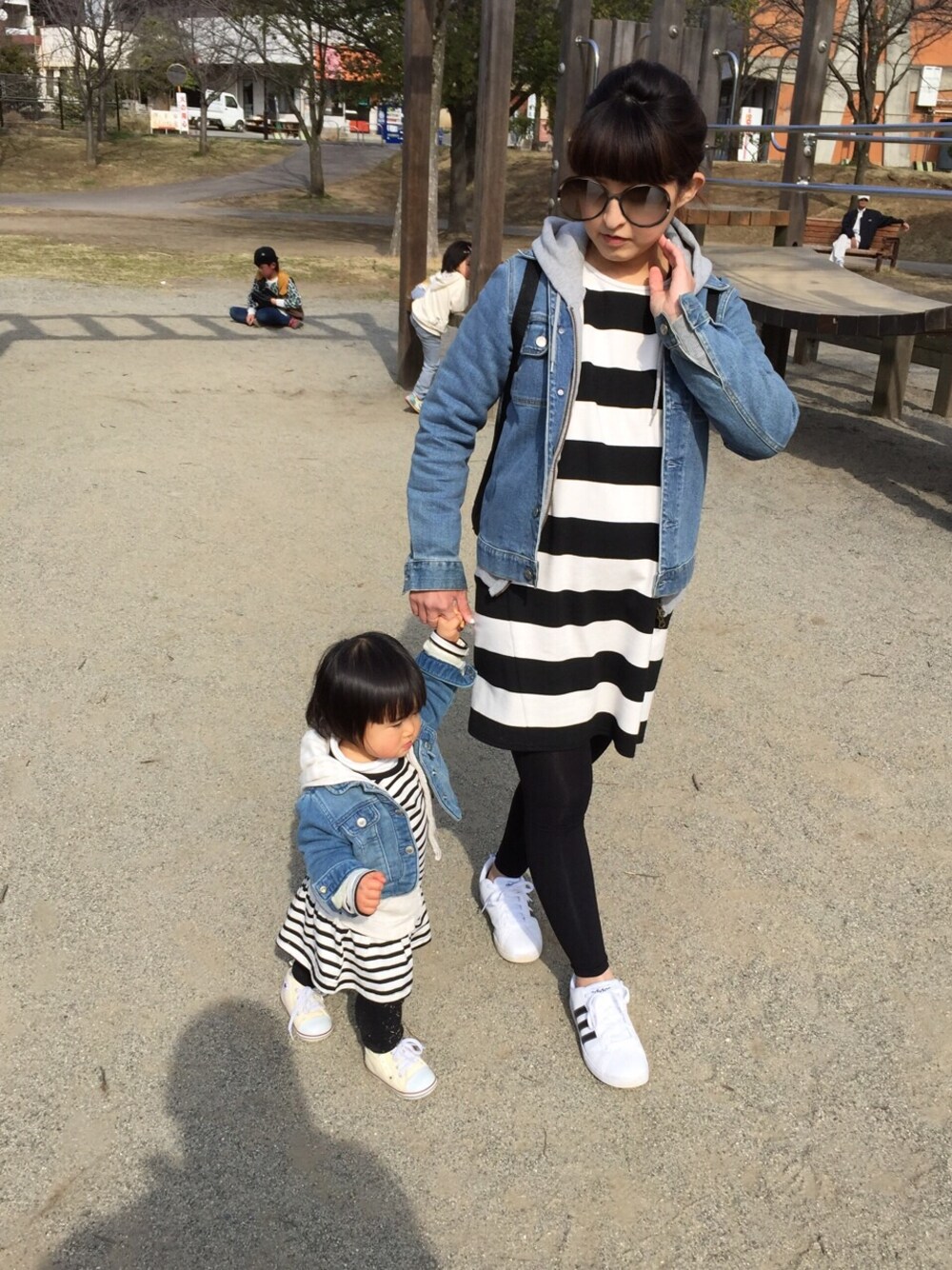 昨日の公園コーデ 娘芝だらけになりました(笑) オソロコーデ今だけしかしてくれないかなぁ♡