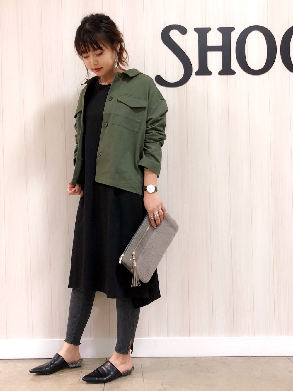 いつもご覧頂きありがとうございます😊 いいね!お気に入りもありがとうございます💕久々の投稿になってしまいました😂 本日はカジュアルスタイルです! ベア天ロングワンピースにリブレギンス で楽チンだけどしっかりトレンド感もプラス❣️❣️ ファーのクラッチバッグがラフすぎない 印象にしてくれるので秋のカジュアル スタイルにはオススメのアイテムです😍 ミリタリージャケットも短めの丈感で スッキリ着れちゃいます🙆♀️✨ 抜襟で羽織るのがオススメです💕