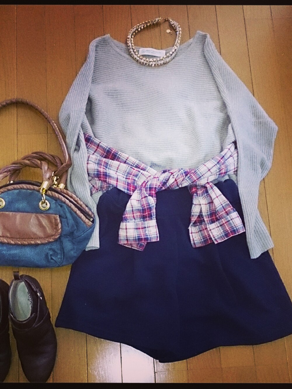 ニット:beauty&youth シャツ:アダムエロぺ ショートパンツ:チャオパ二ック バック:アナザーエディション ネックレス:beauty&youth 靴:レペット パリで購入