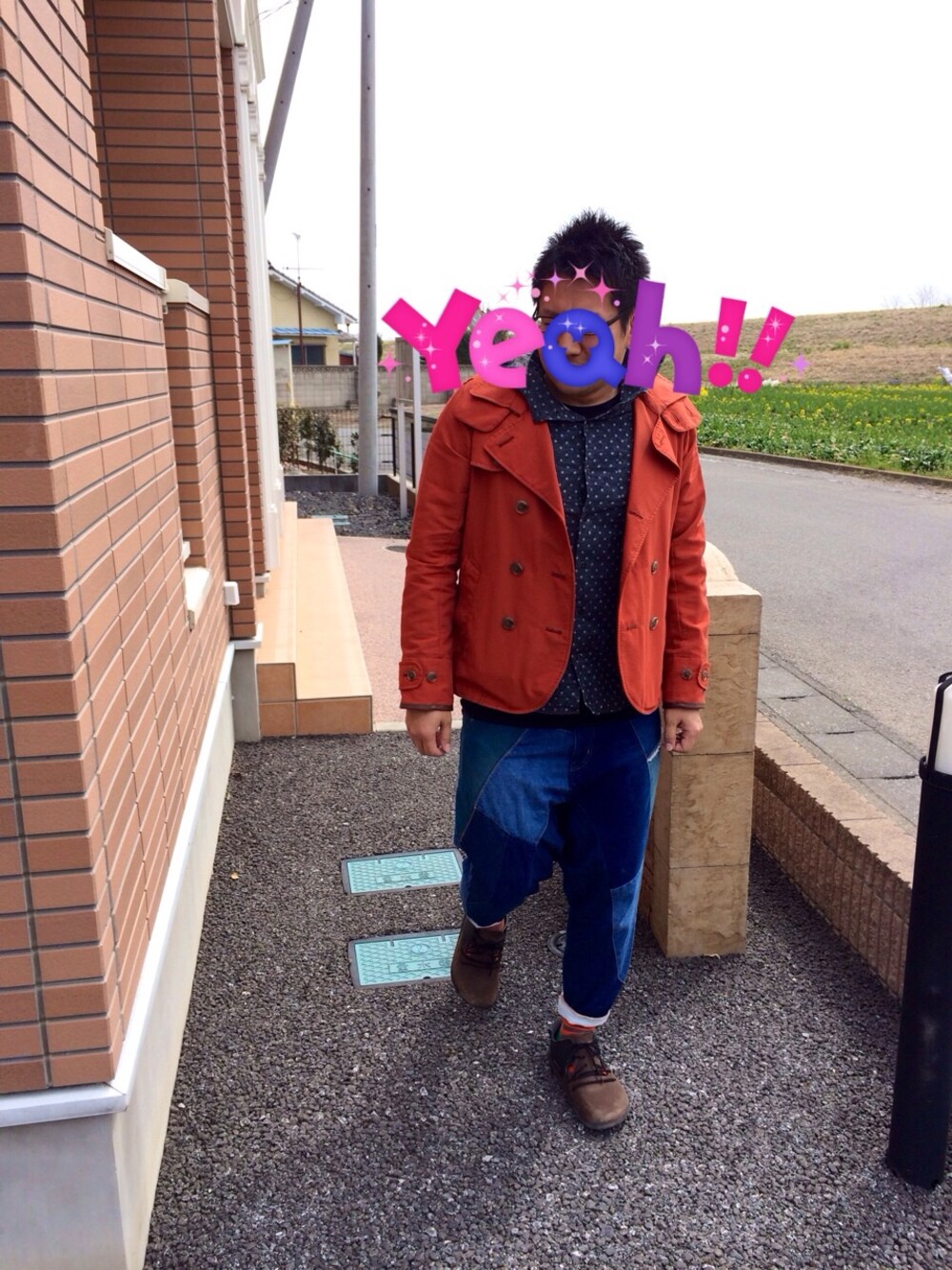 旦那はんコーデ アウター→トパレンカ、FRAPBOIS シャツ→FRAPBOIS パンツ→インディテトラFRAPBOIS 靴→ビルケン 靴下見えないけど、オレンジ×グリーンのしましまー((o(´∀`)o))