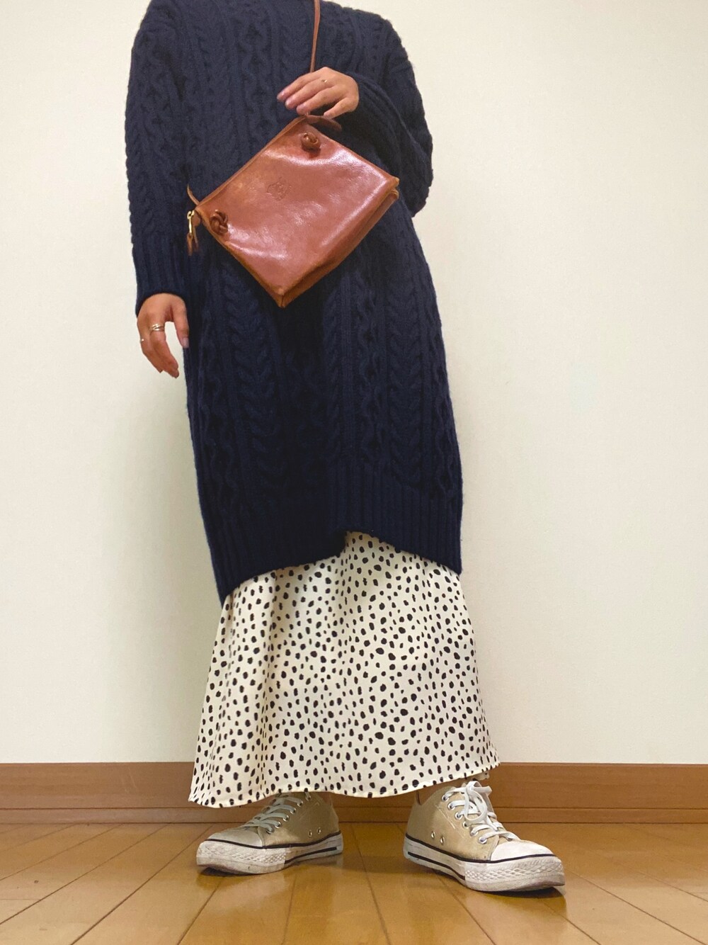 mamiのワンピース「ケーブルニットワンピース(長袖)」を使ったコーディネート