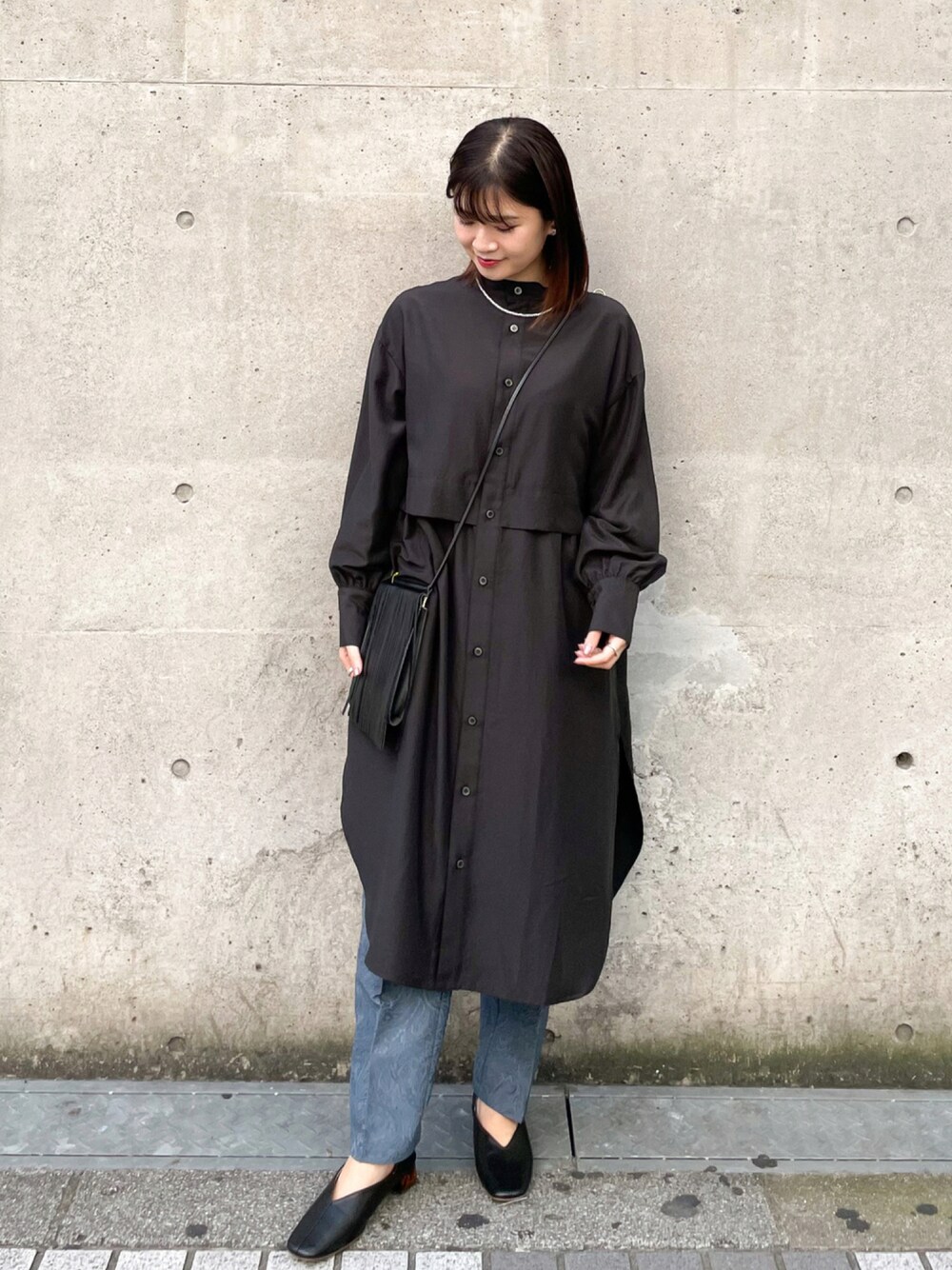 MAMIのシャツワンピース「【WEB限定】【2WAY】レイヤード風シャツワンピース」を使ったコーディネート