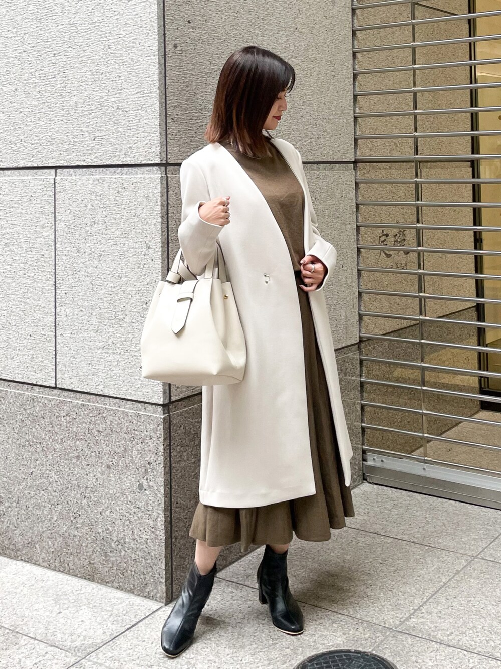 ニットワンピースを使ったきれい目にまとめてみました。 オフィスカジュアルにもおすすめです。