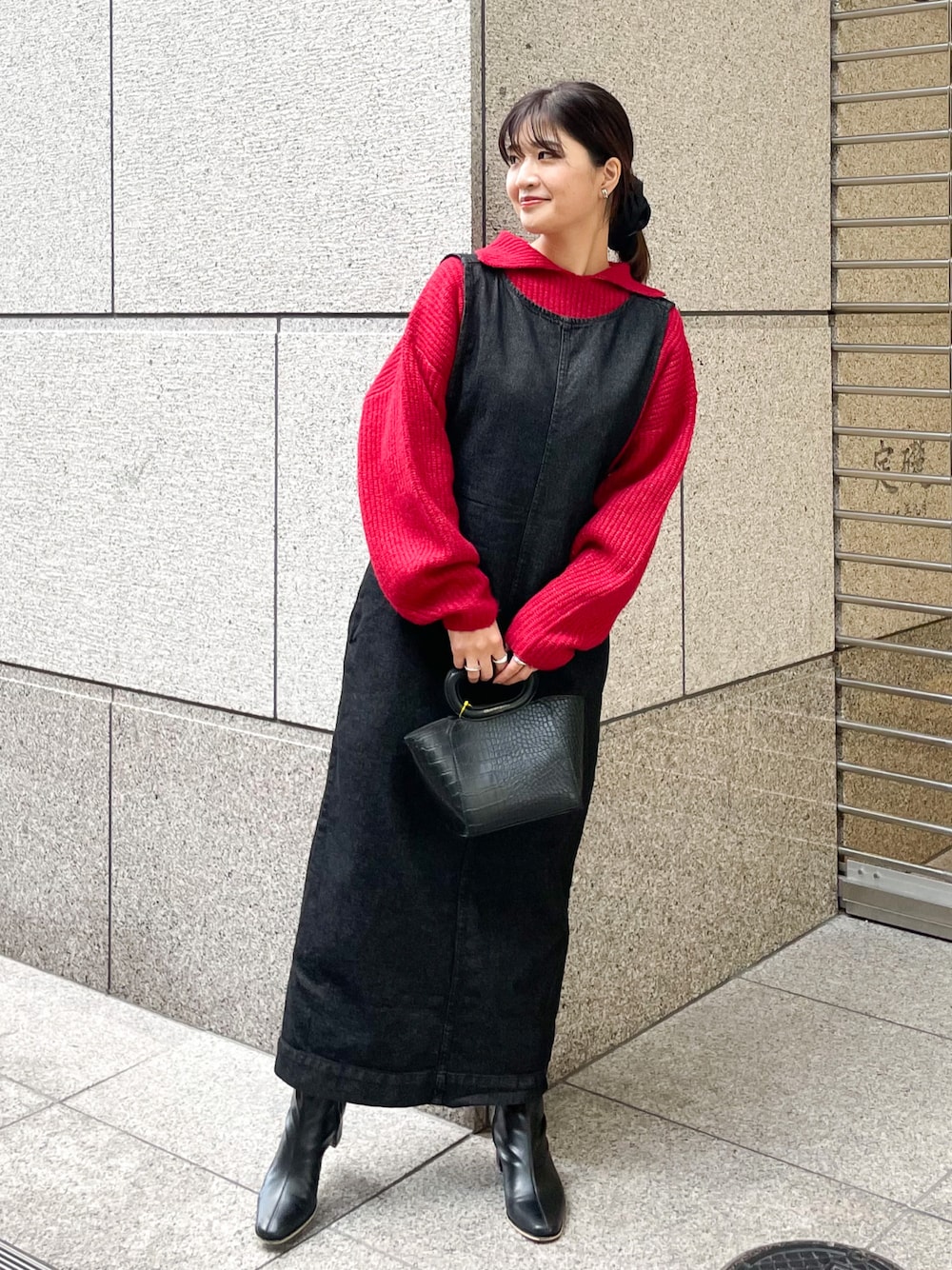 MAMIのニット/セーター「Coffeeニット衿付きショートプルオーバー」を使ったコーディネート