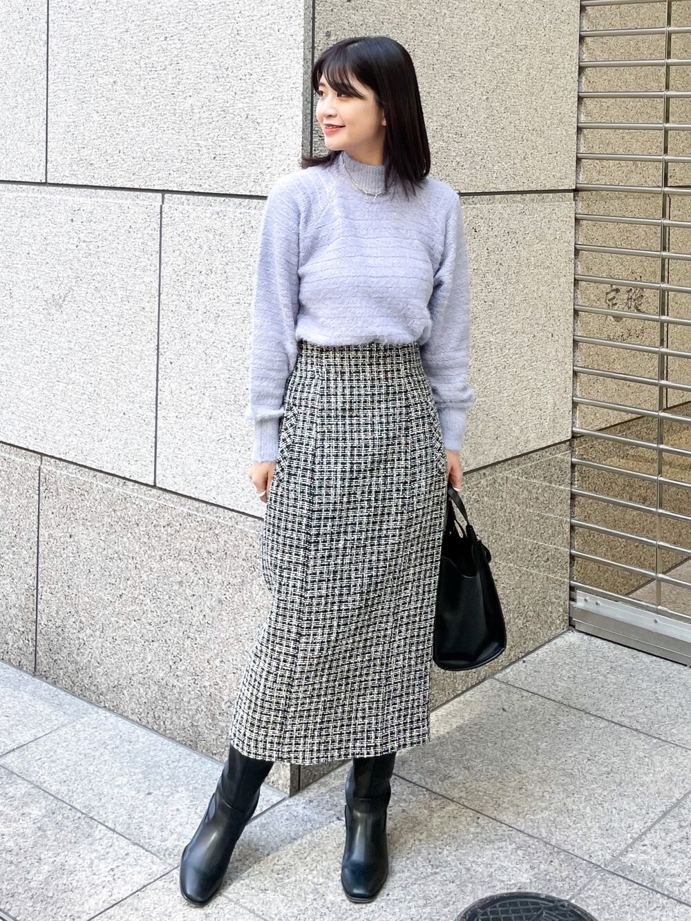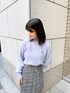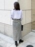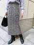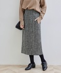 ツイードのアイラインスカートはハイウエストデザインなのでタックインするとスタイルアップ効果が叶います。