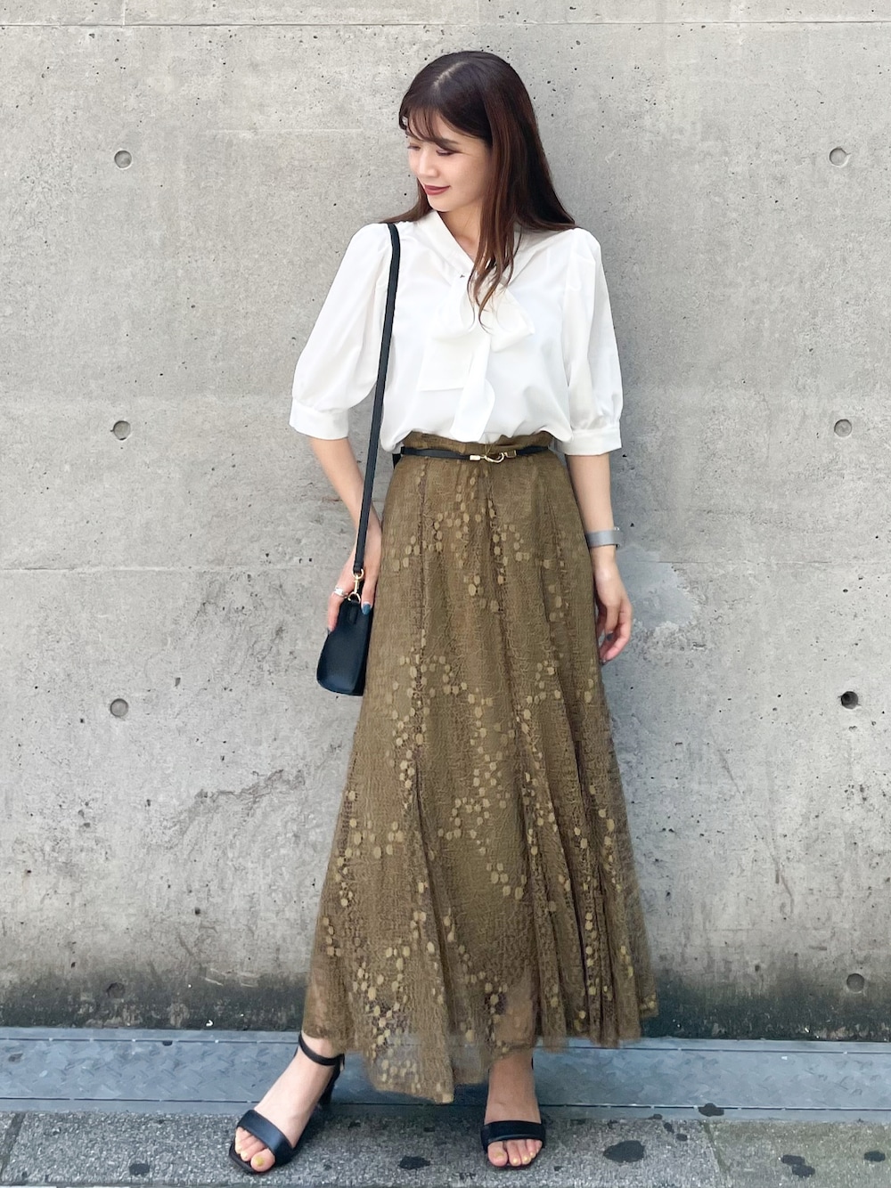 MAMIのショルダーバッグ「【WEB限定カラー:グリーン】軽量スクエアメタルフラップミニショルダーバッグ」を使ったコーディネート