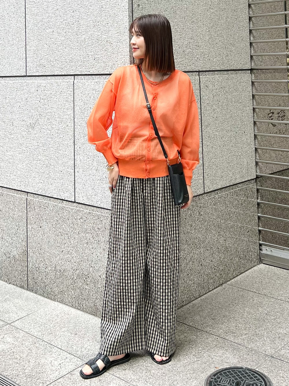 シアーカーディガンを使ったお出かけコーデ。