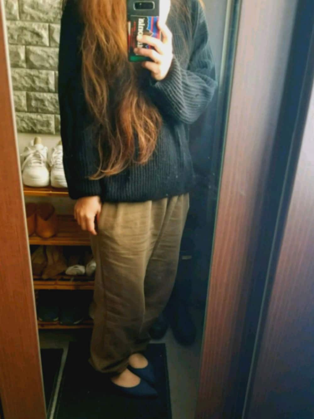 久々にダウンヘアスタイル。 鏡汚れててニットに毛玉ついてるみたい😓