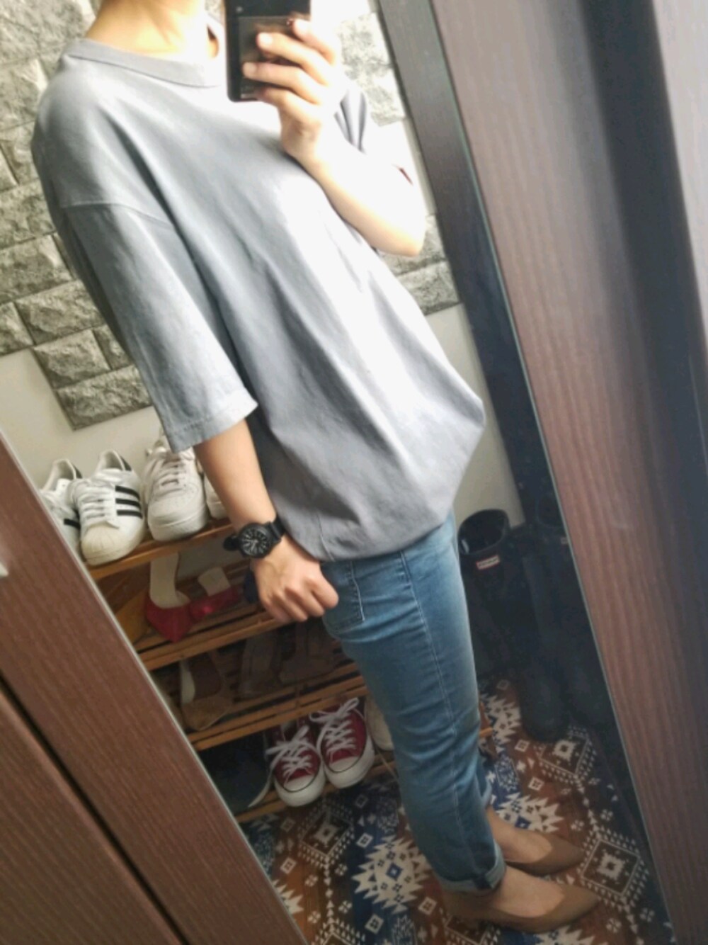 上下UNIQLOコーデ ハイライズシガレットジーンズはどのデニムの中でも最高の履き心地! スタイルよく見えるからおチビさんの救世主✨ 肌が弱い人も蕁麻疹が出にくいですよ!