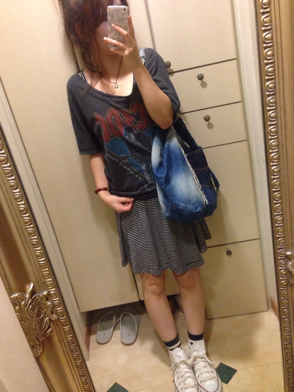 T shirt..Ungrid OP..H&M shoes..CONVERSE bag..Ungrid 友達の家で食いだおれ鍋パ!w なもんで、お腹出るの隠すため← フレアOPにT shirtをレイヤード(笑) グダグダで帰ってきてから撮ったから 髪がえらいことなってた(-∀-)ww