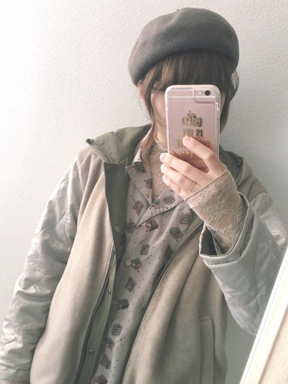 ワントーンコーデ 🐨 ! シャツはタバコ柄🚬です♡ (マッチ🔥もおるよヽ(´ー`)ノ) レースのインナーは🇰🇷サイト (名前忘れた;▽;) ちなみにシャツは古着です 〜 StudioClipのジャケットは リバーシブルで着回し優秀♡! はーと、お気に入り、followも ありがとうございます!!🙌🏻♥