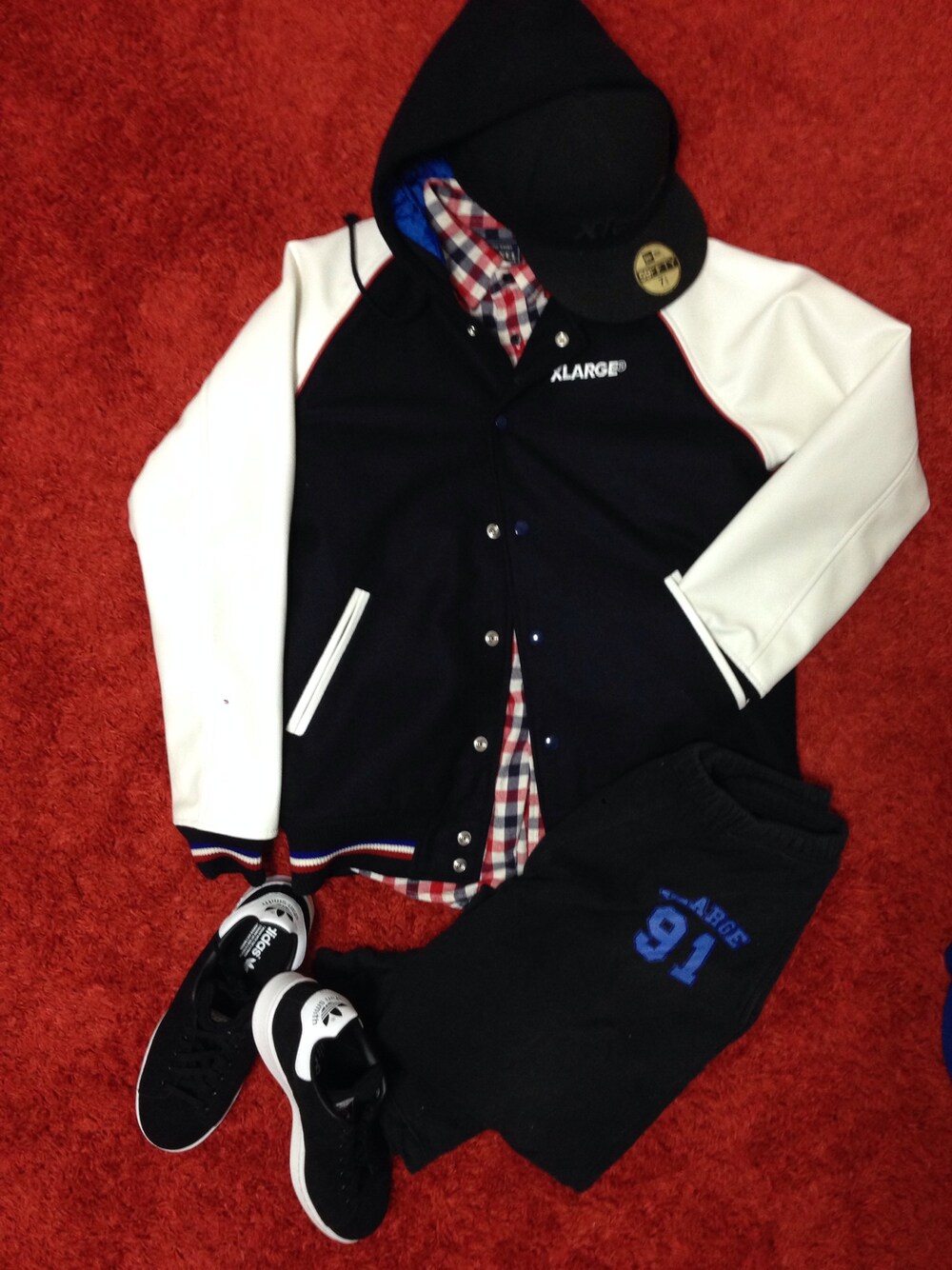 mami.uのスタジャン「HOODED VARSITY JACKET」を使ったコーディネート