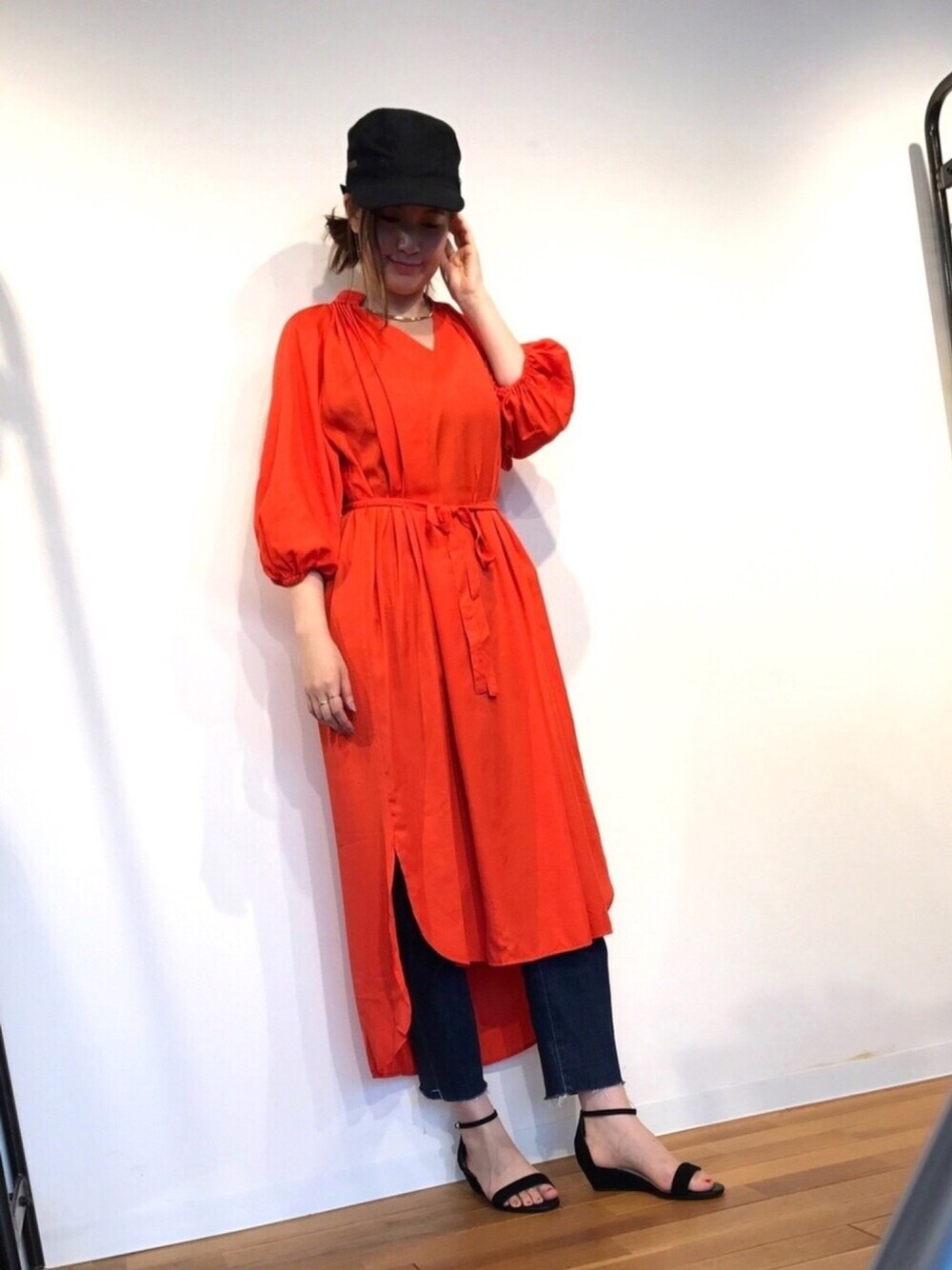 薄手のワンピースは一枚で着ても下にデニムを合わせたりサッシュベルトを巻くのもオススメです🙆足元はベーシックなんですがコットンステップスと言って履き心地がとってもいいシリーズのもので1足持っているととっても便利ですよ✨