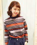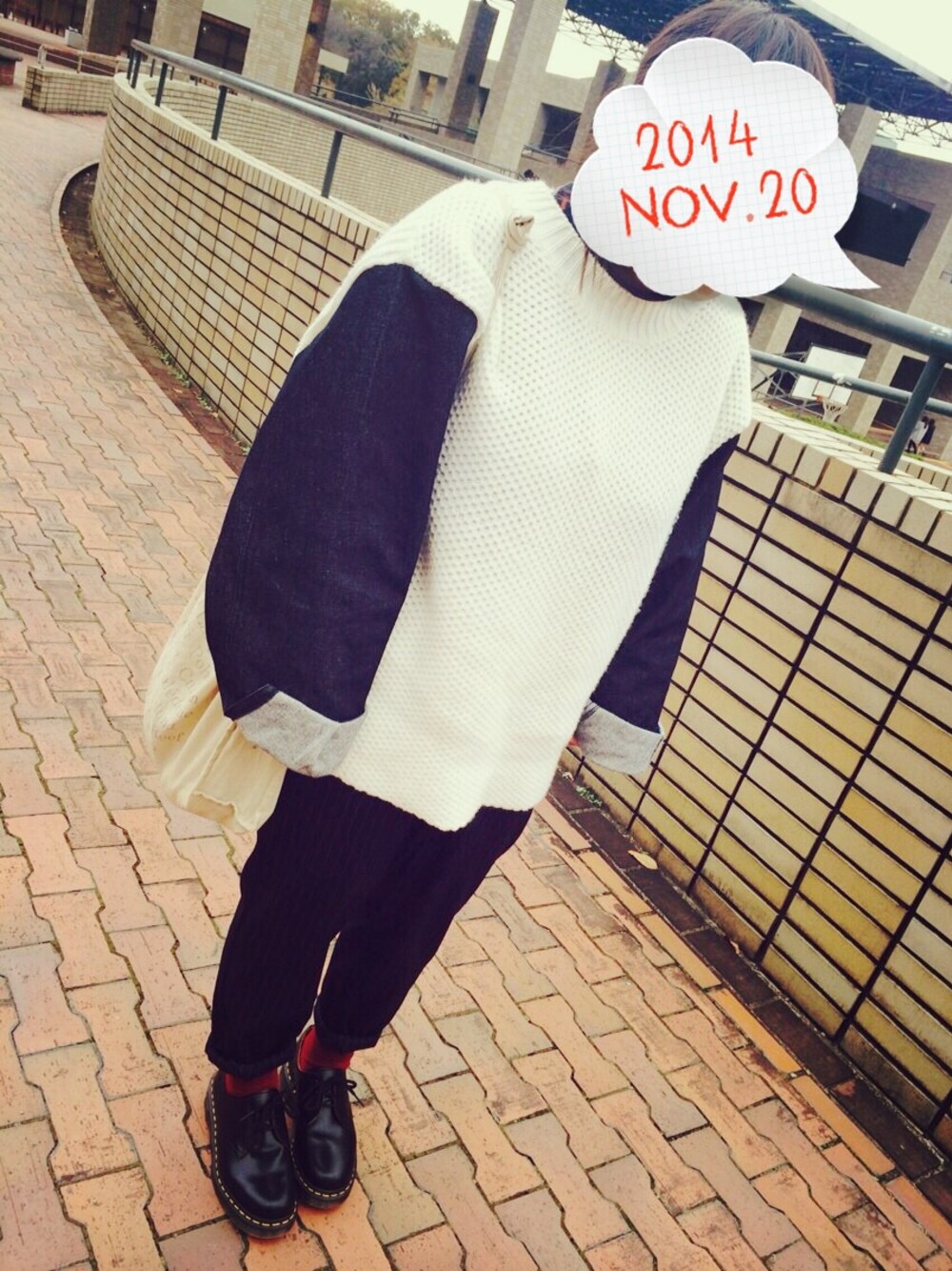 はじめまして ◎ お気に入りのKastaneのデニム袖ニット 寒いのでインナーにプチハイネックプルオーバー ポイントは靴下のred ✡