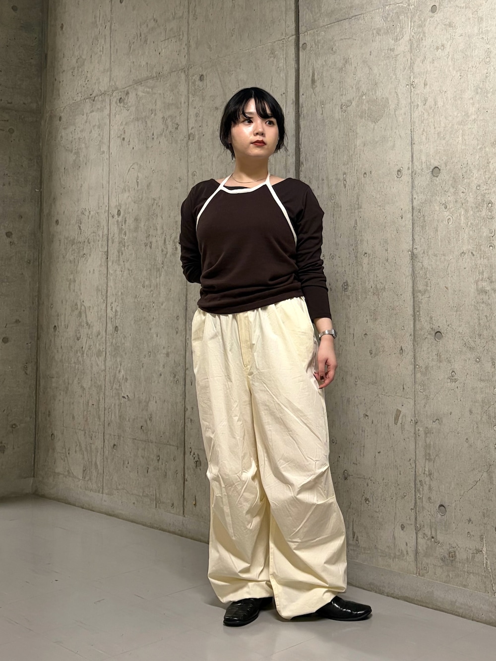 ご覧いただきありがとうございます♪ トップスは、デコルテがすっきり見えるロンTにビスチェがセットになっており、1枚でおしゃれ見えするアイテムです✨ パンツは、シャカシャカ素材でウエストがゴムになっているので楽にきていただけます!