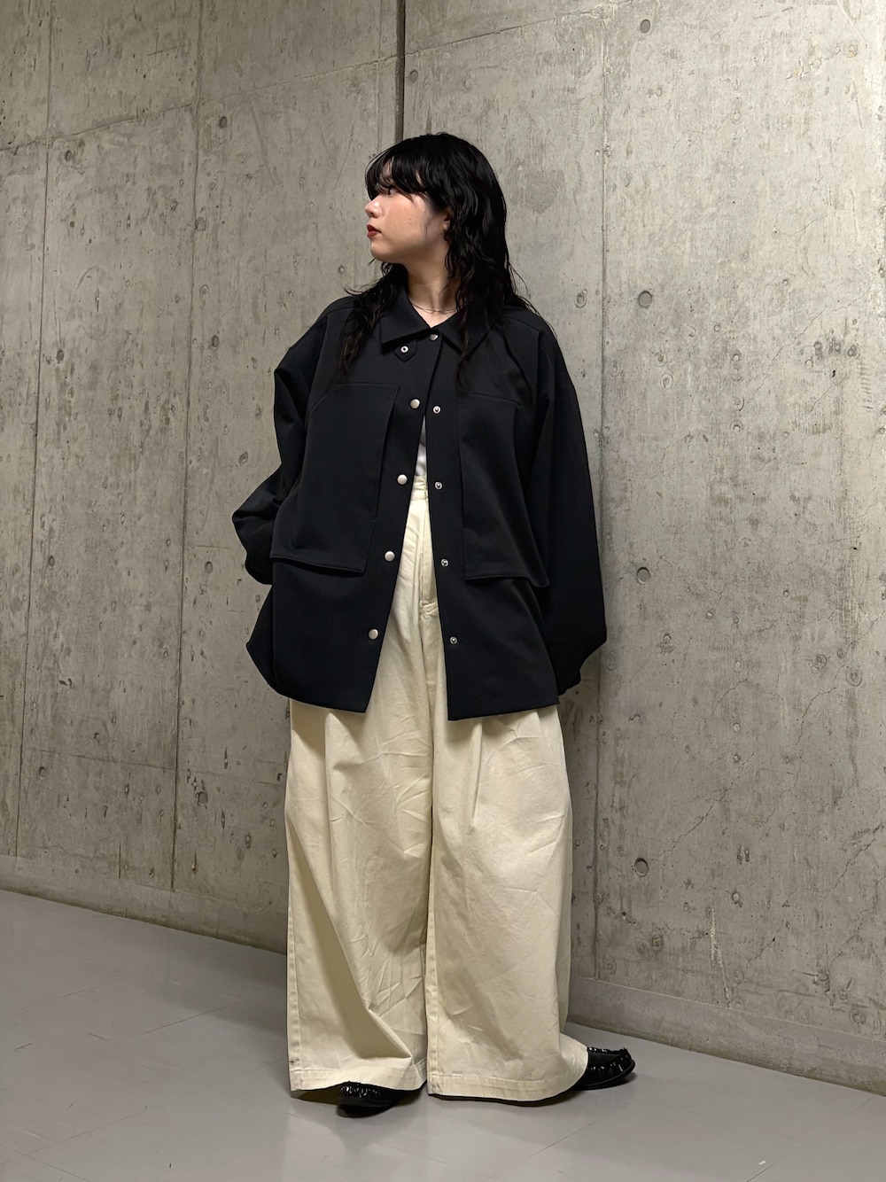 ご覧いただきありがとうございます♪ アウターは、ポケットディティールがポイントでメンズライクな印象ですが、サイドのファスナーを開けていただくと、抜け感が出てオススメです✨ ぜひ店頭でお試しください🎶