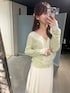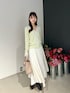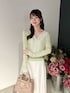 ◤トップス レースがドッキングされた華やかなカーディガンです。 Vは少し深めなので注意です。 袖口もレースなので手元見るとテンション上がります。 ◤スカート 今後販売です
