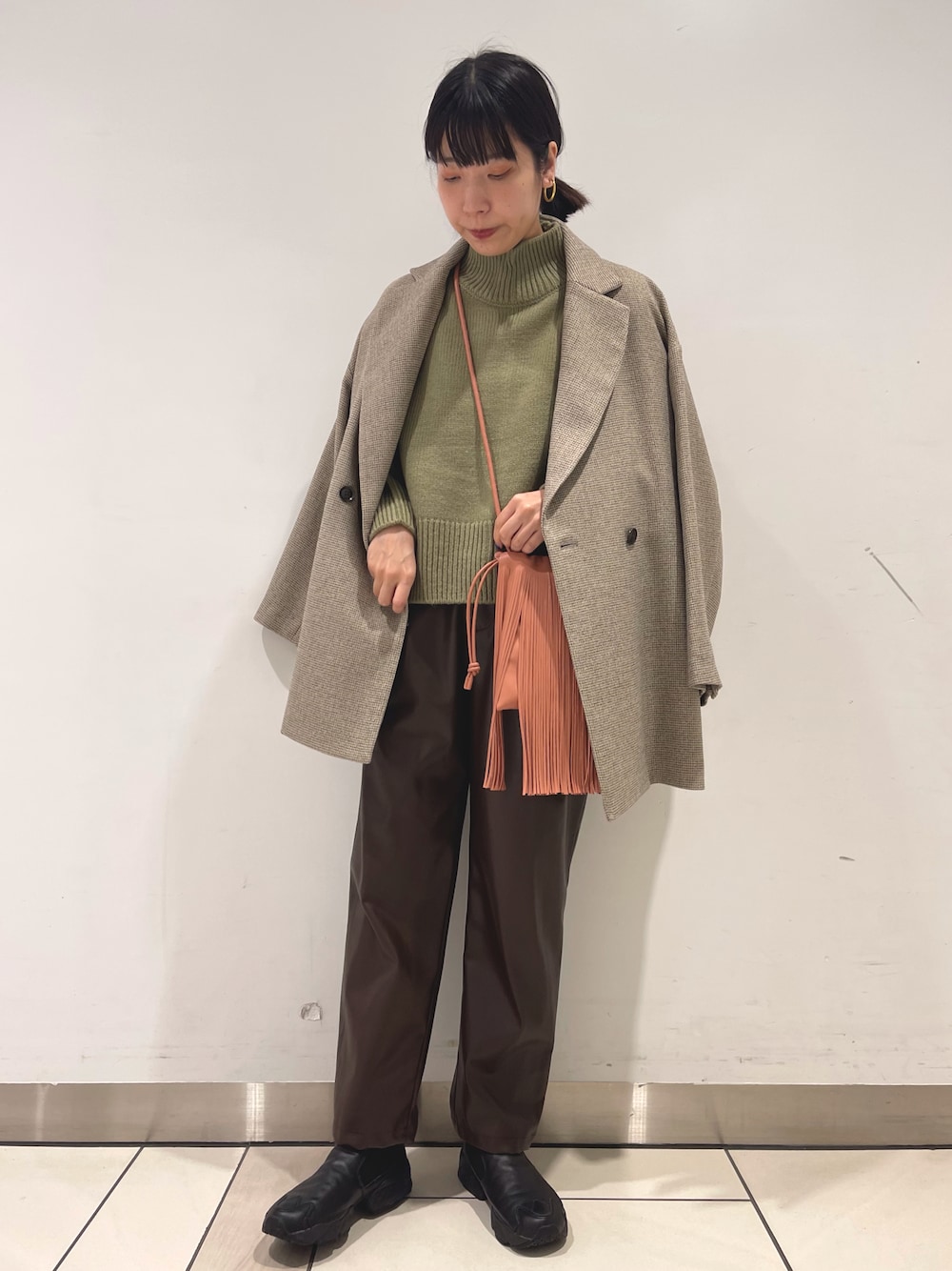 スクエアシルエットのゆったりニットにジャケットスタイル。 ざっくり羽織れるアイテムは重宝しますよね。