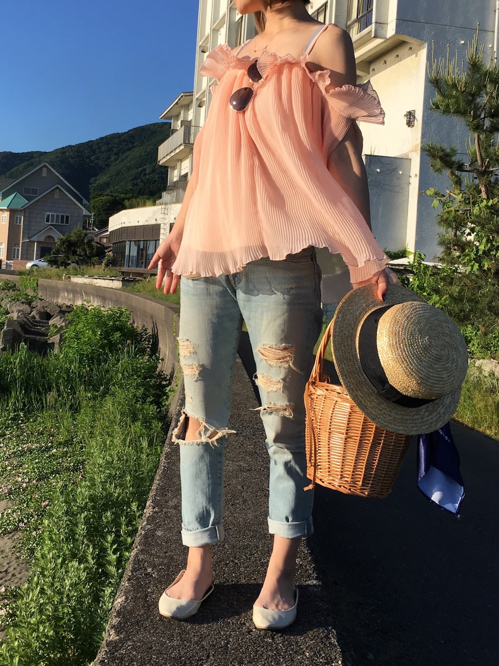 日曜日✨ 暑すぎで夏スタイル☀️ 夕方、海に行って黄昏ながら 夕日を見ました✨ ほのぼのした時間をゆっくり楽しみました😌💓