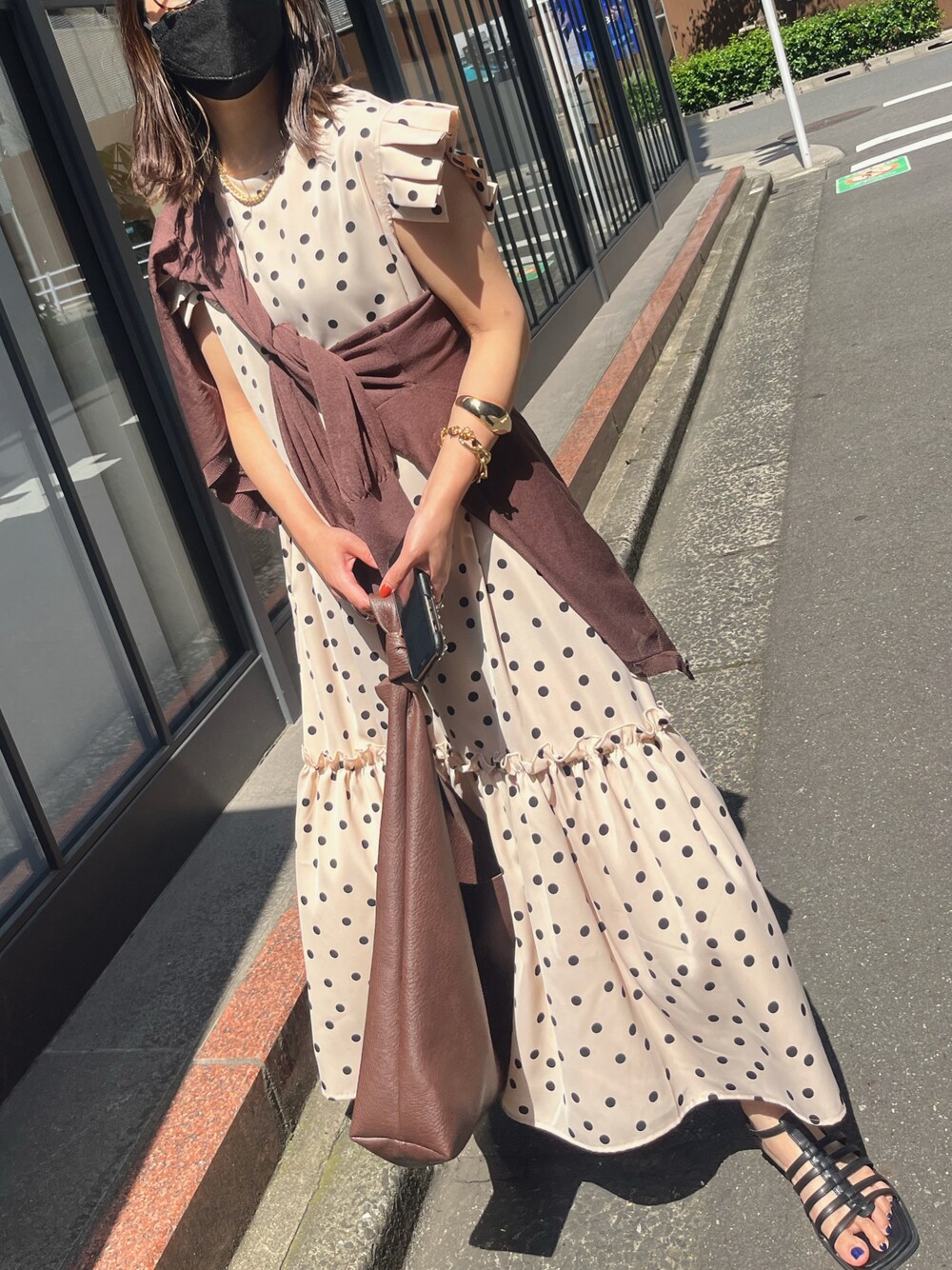 mamiのワンピース「ドット肩フリルティアードワンピース」を使ったコーディネート