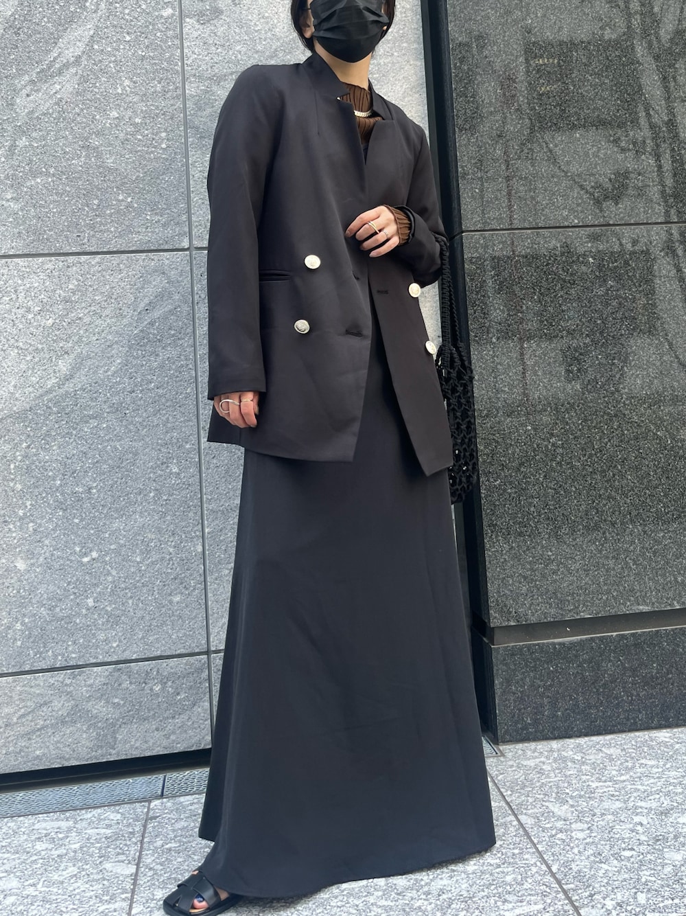 mamiのワンピース「【_____m.weコラボ】ノーカラー多ボタンベスト+マーメイドキャミワンピース」を使ったコーディネート