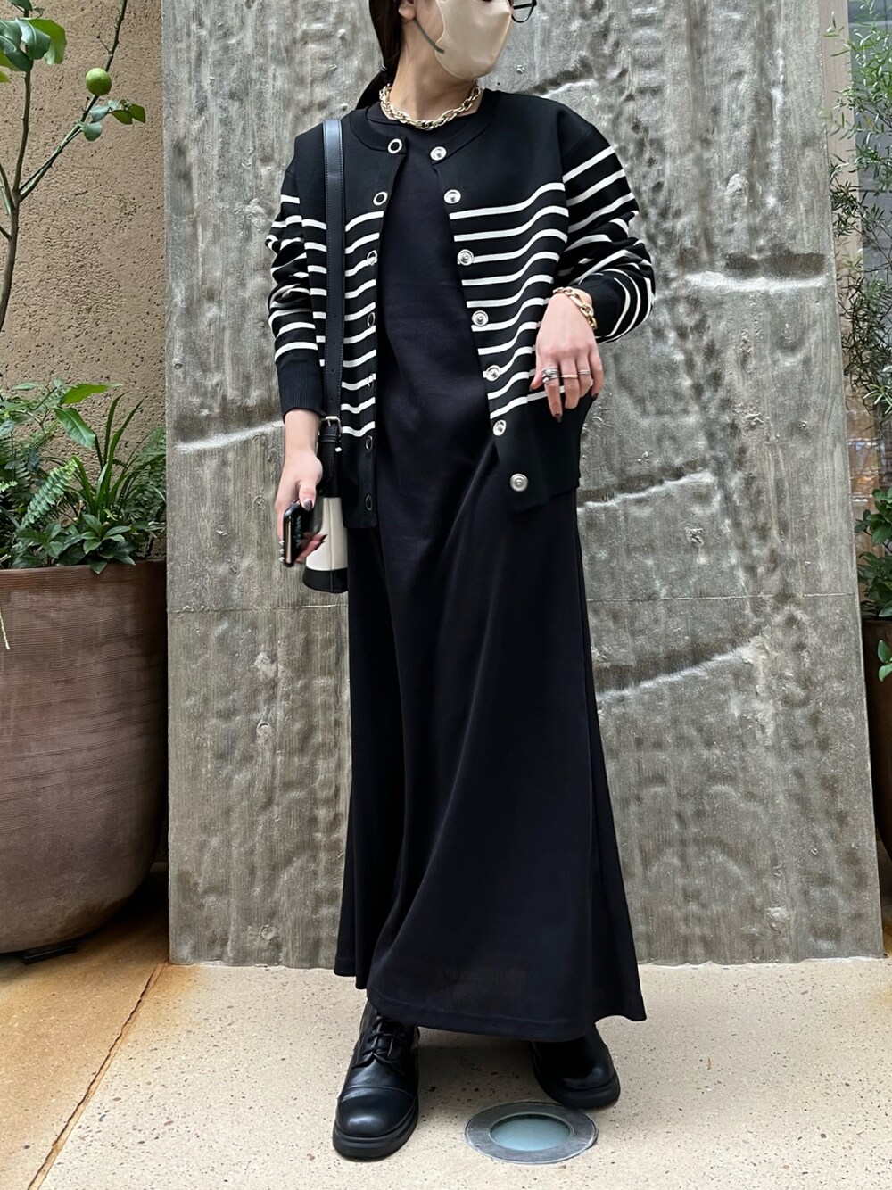 mamiのカーディガン/ボレロ「【選べるデザイン】前後2wayクルーネックスナップカーディガン」を使ったコーディネート
