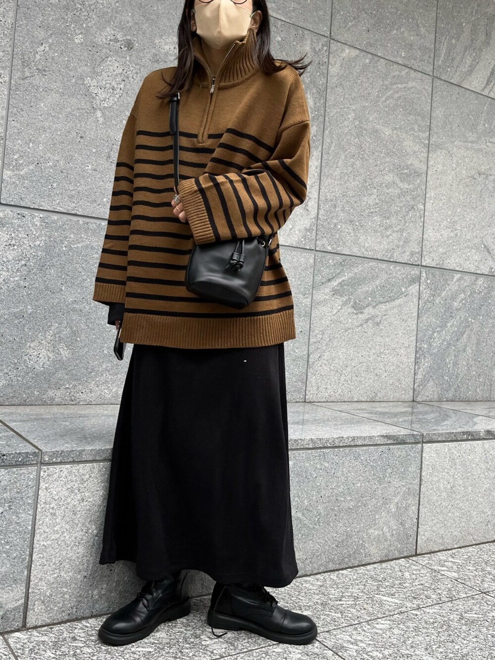 mamiのニット/セーター「ハーフZIPオーバーニット パネルボーダー/無地」を使ったコーディネート