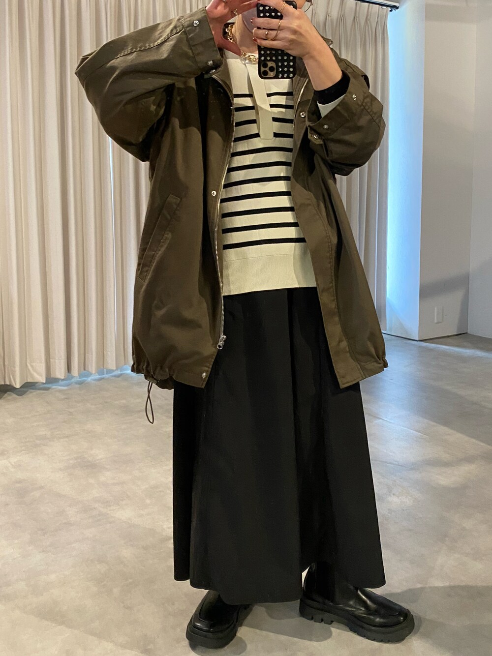 mamiのニット/セーター「ダイバーニット深Vニットプルオーバー」を使ったコーディネート