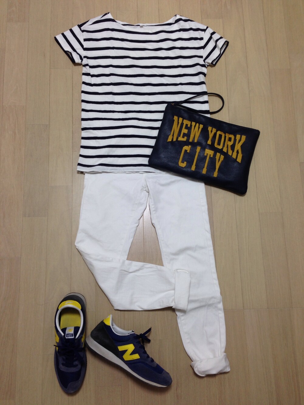 トップス:無印良品 パンツ:UNIQLO クラッチ:しまむら スニーカー:newbalance 子連れだとクラッチで持てない… ので、ショルダーにもなるので便利♡