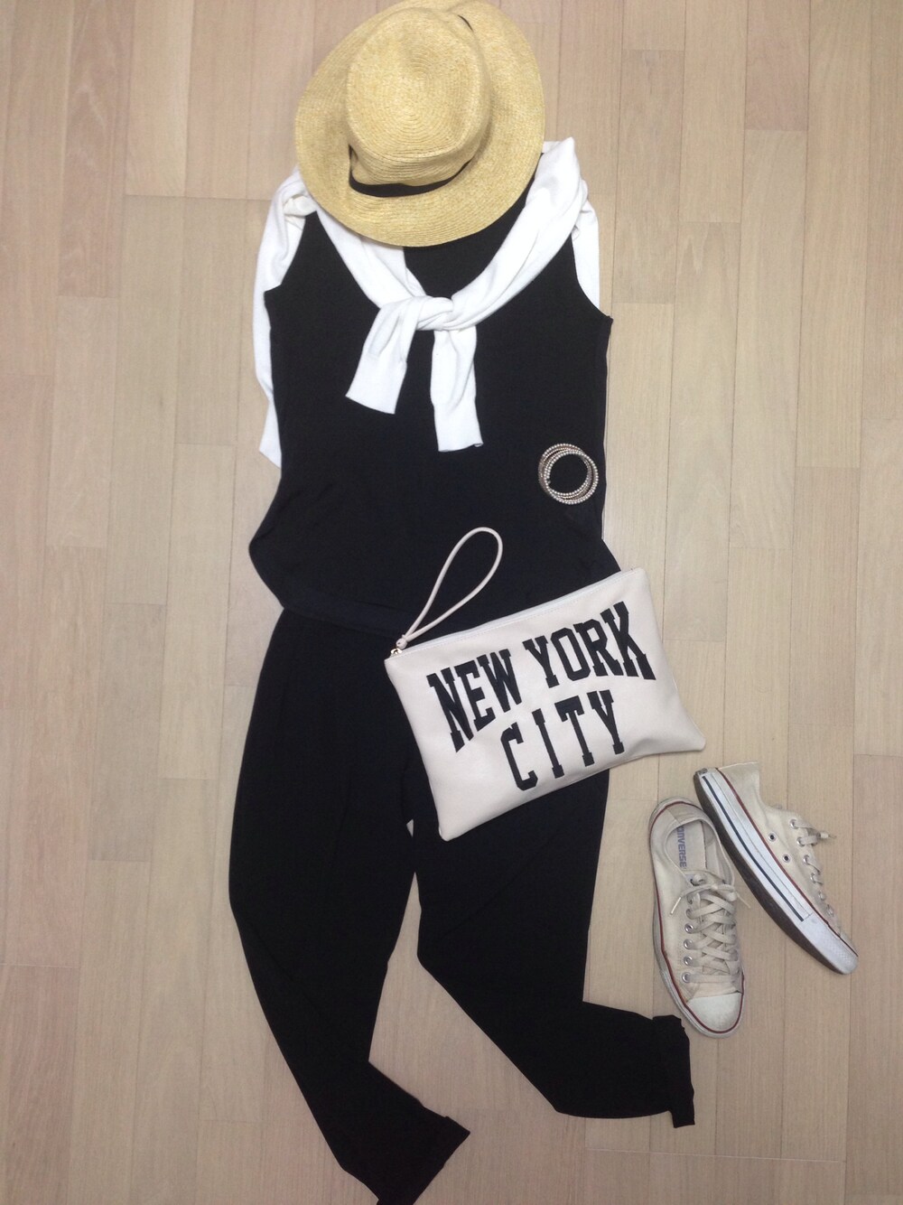 帽子:無印良品 黒×黒でオールインワン風。 GUのパンツはサス付きパンツ。 今回はサスペンダーをはずして。 写真がなんだか短足に見える( ̄▽ ̄)