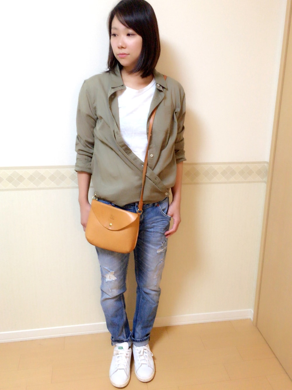 ベージュのシャツを秋に向けて購入したのでコーディネートしてみました(^^)