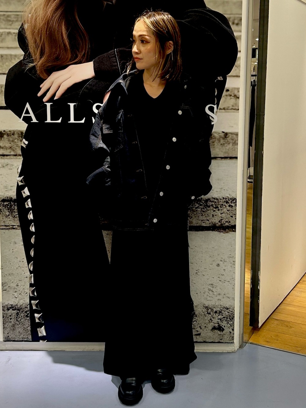 @asjmamiのデニムジャケット「DILLAN OVERSIZED DENIM BOMBER JACKET | DILLAN オーバーサイズ デニム ボンバー ジャケット」を使ったコーディネート