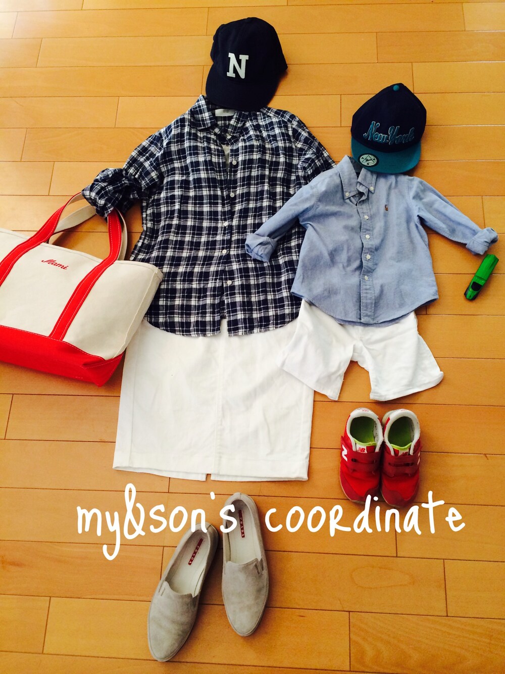 いつもの全身UNIQLOコーデ( ´ ▽ ` )ノ このリネンシャツ使えるー‼︎‼︎ 今年4枚目w 長男とペアルック♡ shirts:UNIQLO skirt:UNIQLO cap:UNIQLO shoes:PRADA bag:L.L.Bean