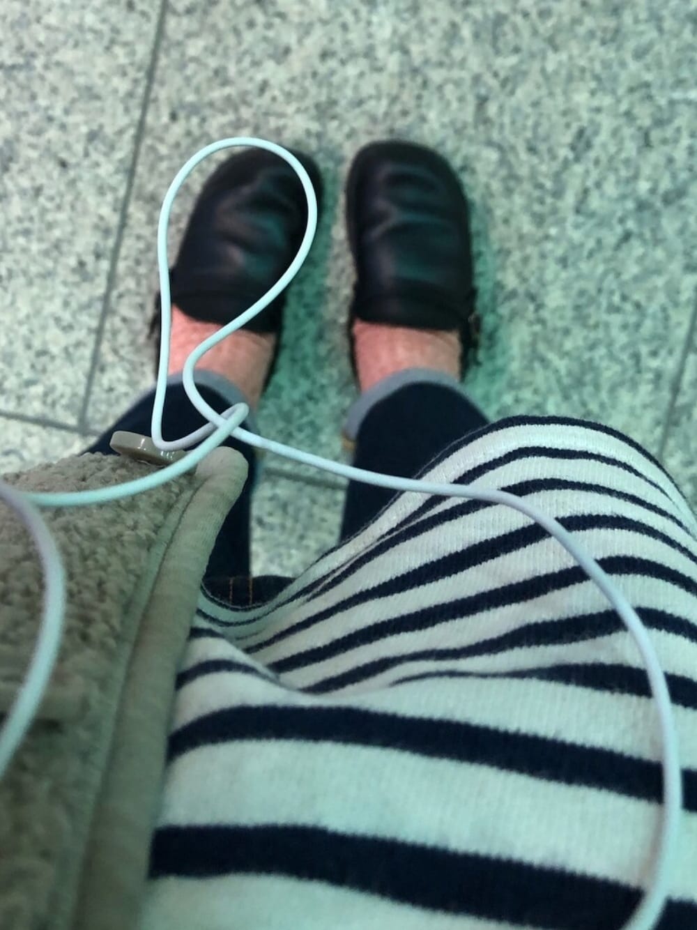 今日はハロウィンなので、パンプキンぽい?色のあったか靴下で。 アウター用のくるみボタンは買ったものの面倒で、まだ付け替えず。。 このモコモコのアウター着ても寒かった。