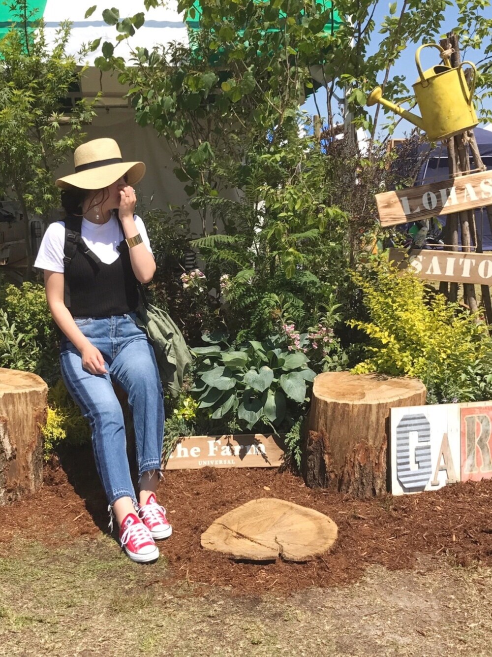 ロハスフェスタ万博にて。 動きまわるから 白Tにデニムに赤コン! ちょっとキャミビスチェ 重ねちゃったりなんかして。 日差しすごくて麦わら帽子は必須👒 インスタグラム プライベート▶︎ma.mi.nnie ハンドメイドアクセサリー▶︎maminnie_store