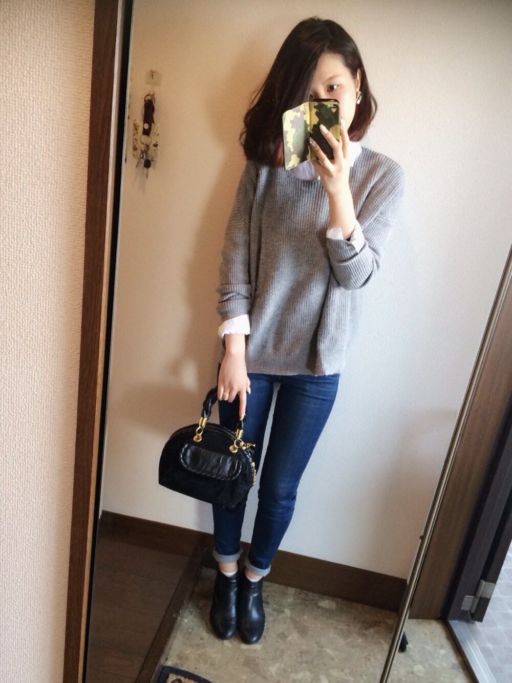 白シャツ×グレーニット×デニム 大人シンプルに♩ ig→ma.mi.nnie フォローミー!