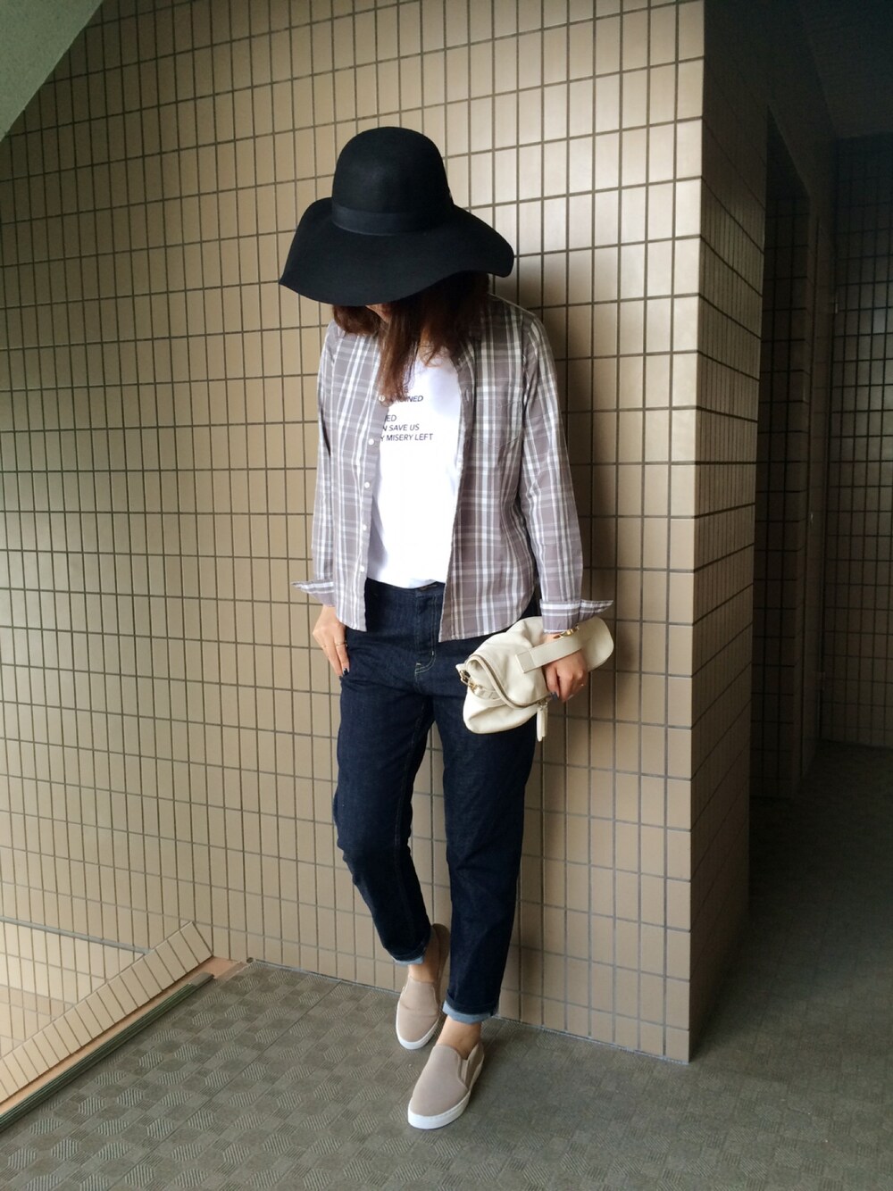 デニム×チェックシャツ×スリッポン だいぶカジュアルコーデ。 色味を秋に〜。 にしても今日は暑すぎる。 今からジュラシックワールド観る! たのしみー! インスタグラム▶︎ma.mi.nnie