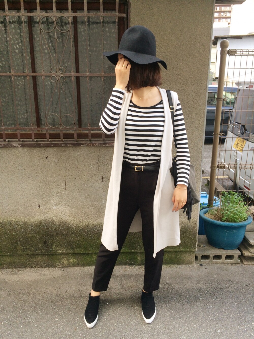 昨日は中崎町に行ったので 古民家の前で。苔。(笑) 初めて友達に撮ってもらいました。 照れるやつ。 THEモノトーン△▼ 日中ちょうどよかったけど 夜は上着ないと寒かったなー インスタグラム▶︎ma.mi.nnie