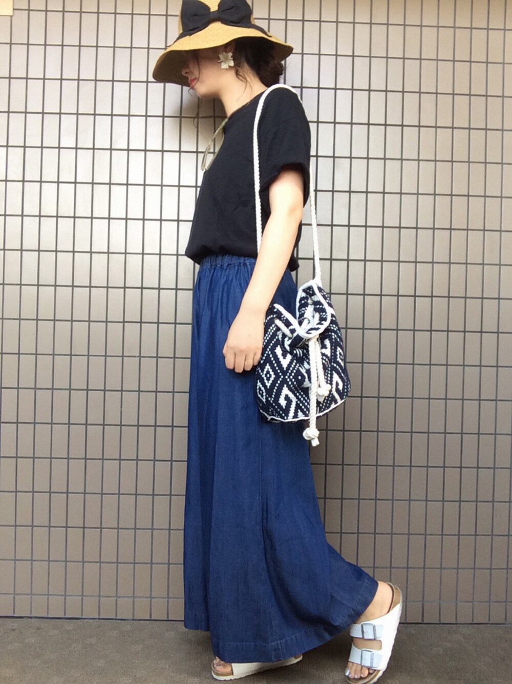 \ はろー。7月!/ 夏が来たー! もう暑すぎて暑すぎて普通のデニム穿けない。 この薄い生地のワイドパンツ最高!! インスタグラム▶︎ma.mi.nnie