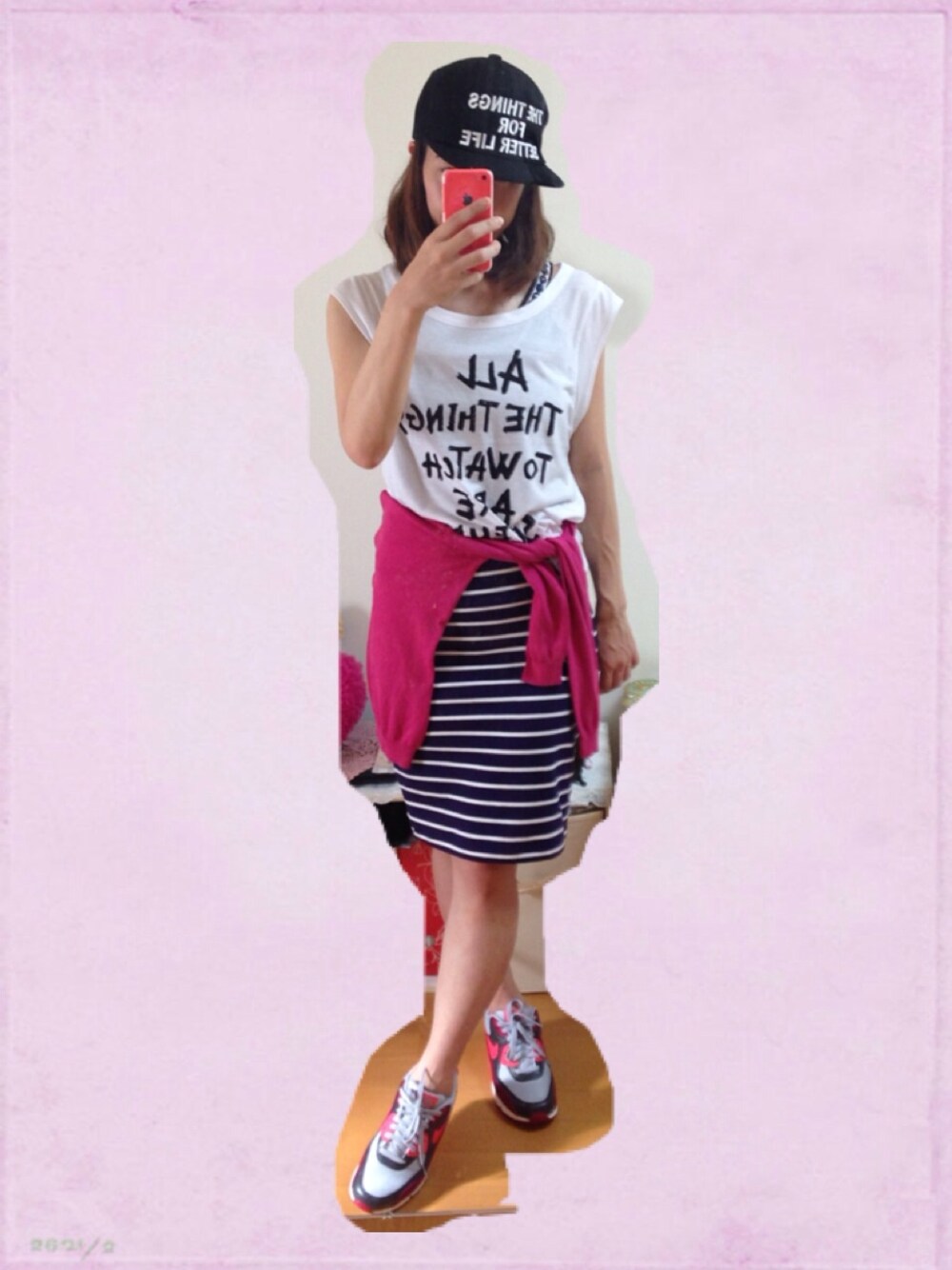 カーディガン UNIQLO スカート UNIQLO キャップ ブランド不明 超カジュアルっ! はずしすぎたっ! でもらくちん。