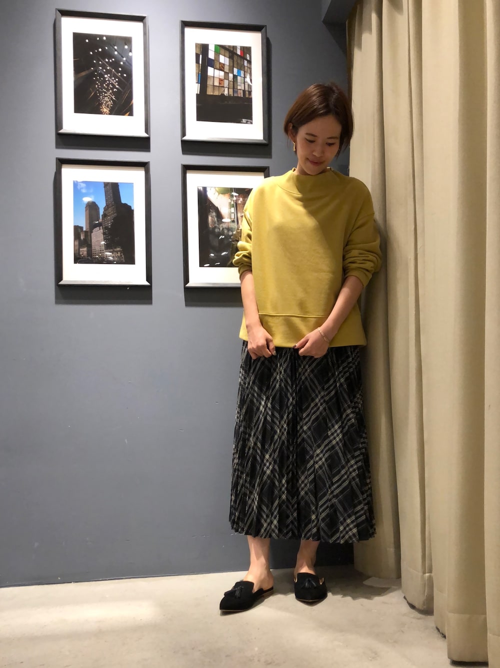 🍭ゆるコーデ 黄色のスエット×チェックプリーツスカート
