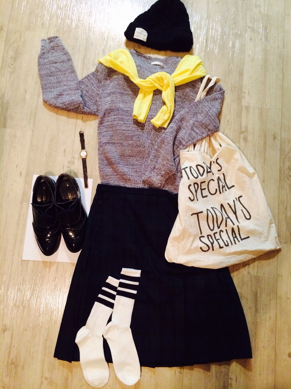 ニット → GU スカート → 無印 先のプリーツスカートコーディネートを マイナーチェンジ