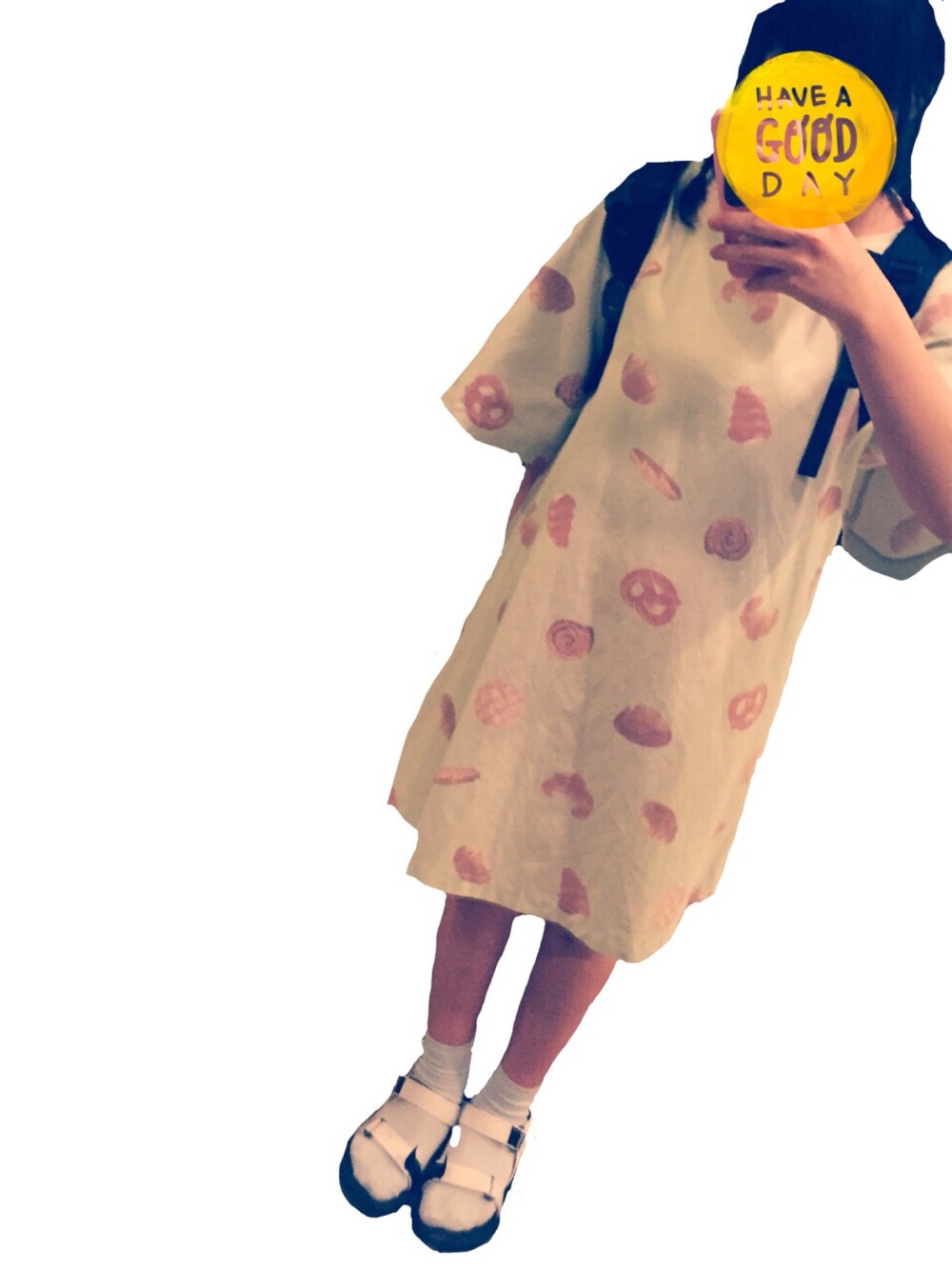 昨日のお洋服○ 学校からのライブのためにアメ村に行きました 4月から約1ヶ月ぶりのライブは幸せでした😋 お気に入りのパン柄ワンピはお腹がすきます(´-`).。oO 髪の毛はラフに三つ編みで。