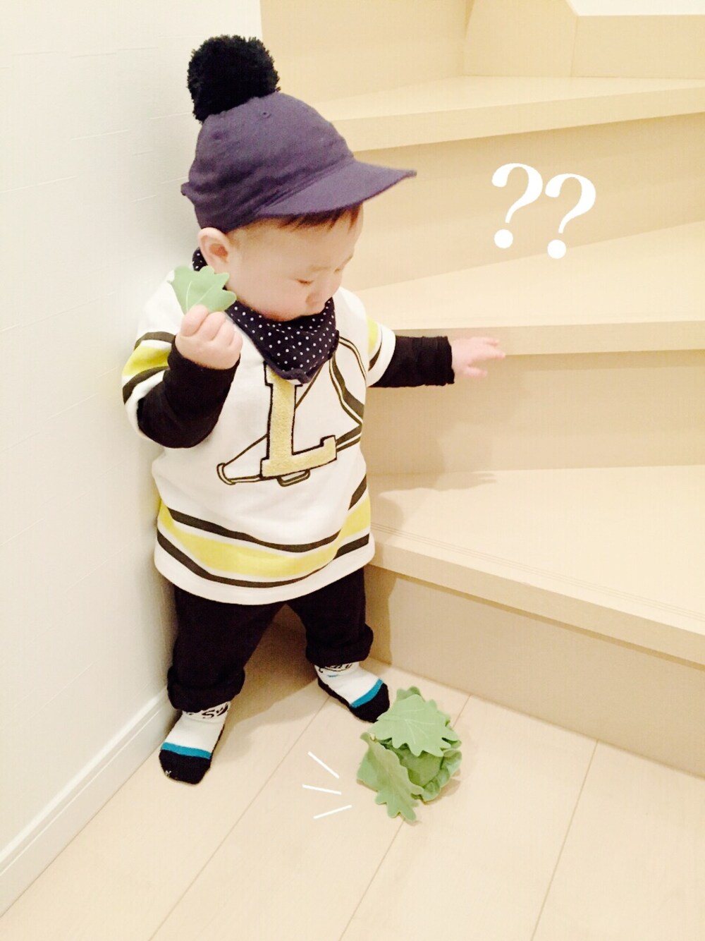 昨日は皆さんのエレガンスな写真を見て、心が優雅な気分になりました♡ みずたまのタグに乗りたいけど、新しく買ったスウェットを早く着せたかったのでみずたまのビブにしました\(◡̈)/♥︎キャップはサイズオーバー気味でピチピチだ。なんだか野球のユニフォームみたい笑〃 最近、糸〜巻きまき〜♪の歌の様に手をグルグル?パンパン?するんですが、なんなんだろうー⁇私がパンとか食べた後手を叩くからその真似なのかな⁇笑。赤ちゃんって面白い♡( ᵒ͈̑ᴗ̂ᵒ͈̑ )‼︎
