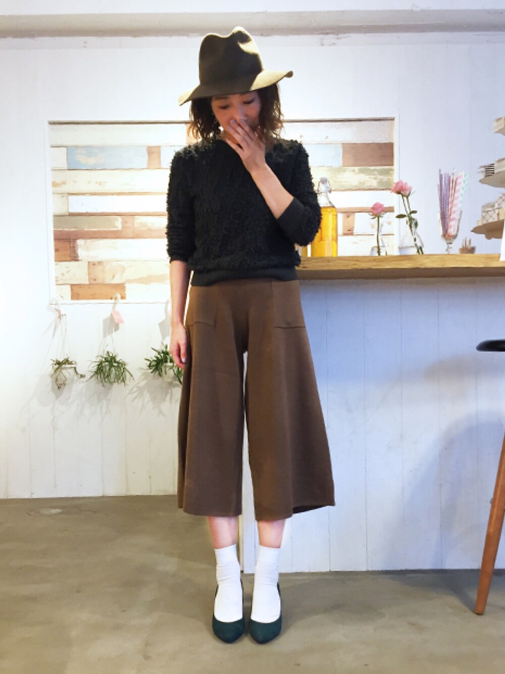 展示会1日目!!! ニットのガウチョは楽チンで動きやすい! フリンジ風のトップスに ニットパンツの リラックスカジュアルスタイル! 足元はヒールでキチンと感をだしました! エンチャンテッドのプレーンパンプスは 完売続出でしたが週末から再入荷致します◡̈✨
