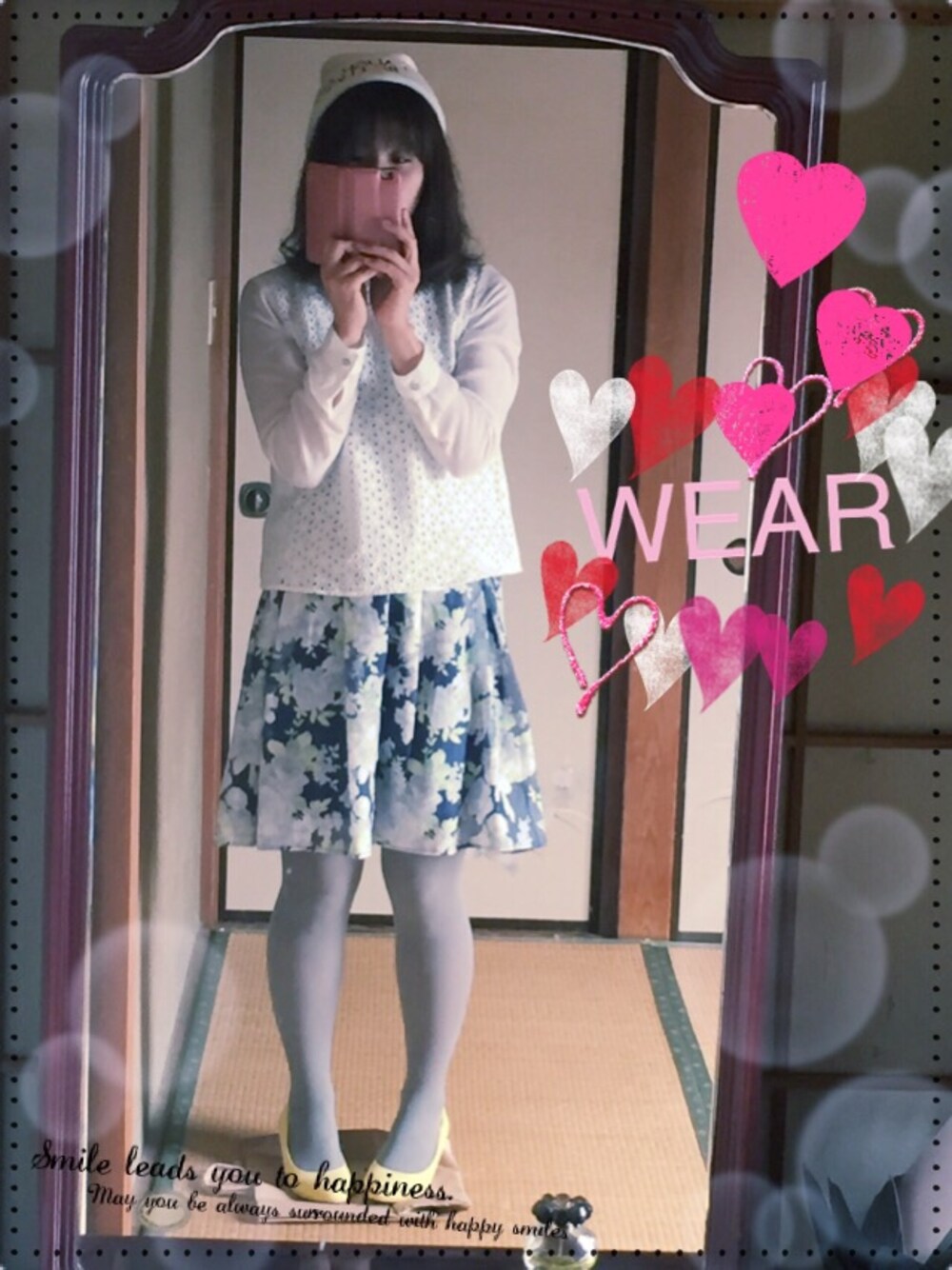 ニットキャップ Honeys この間のお出かけ春コーデ(*^^*) 買ったばかりのブラウスとスカート♪ すでにお気に入り💗この春沢山着よう☆*