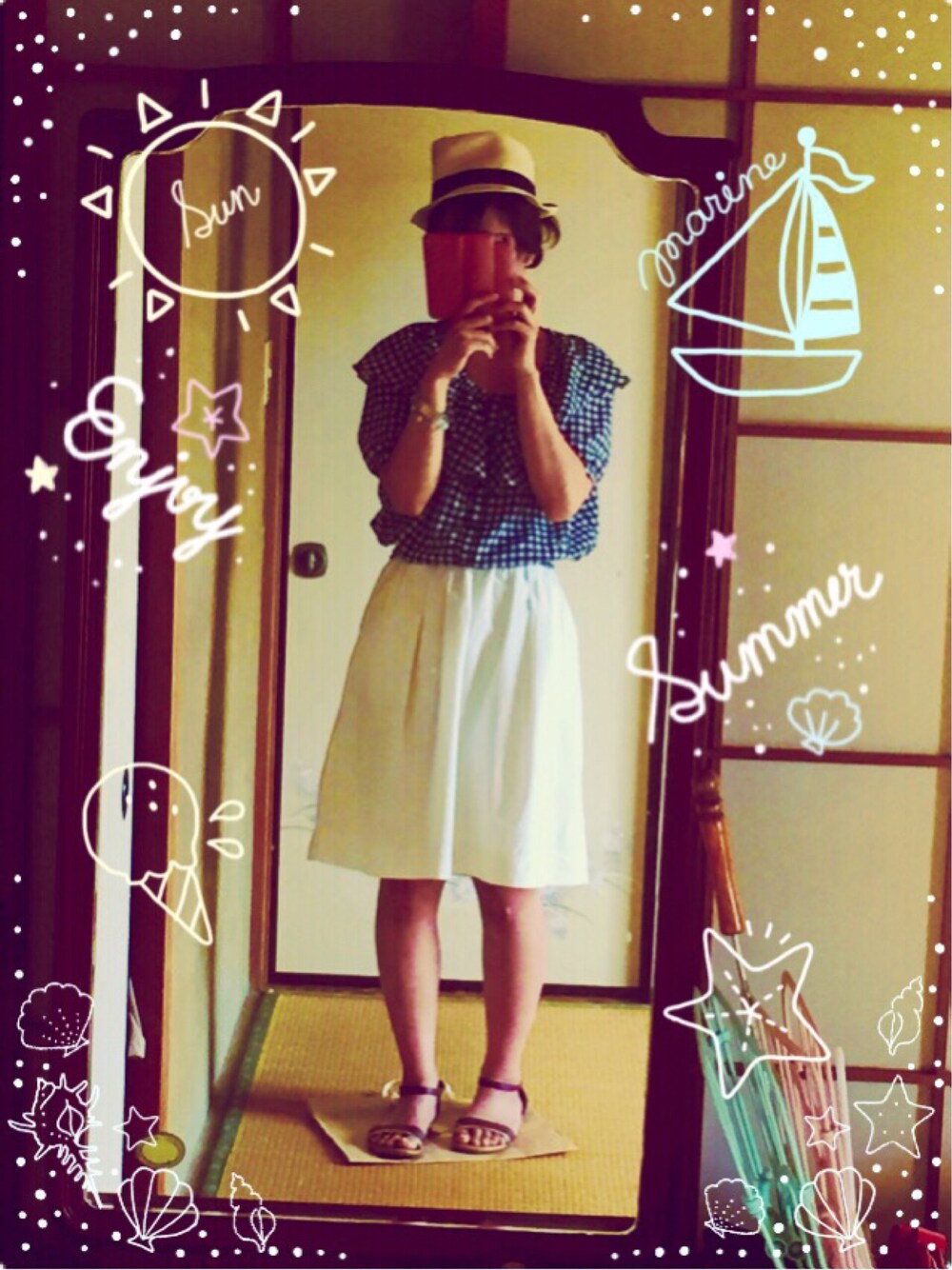 mori☆のシャツ/ブラウス「Eボイルギンガムオフショルショートスリーブ 545911」を使ったコーディネート