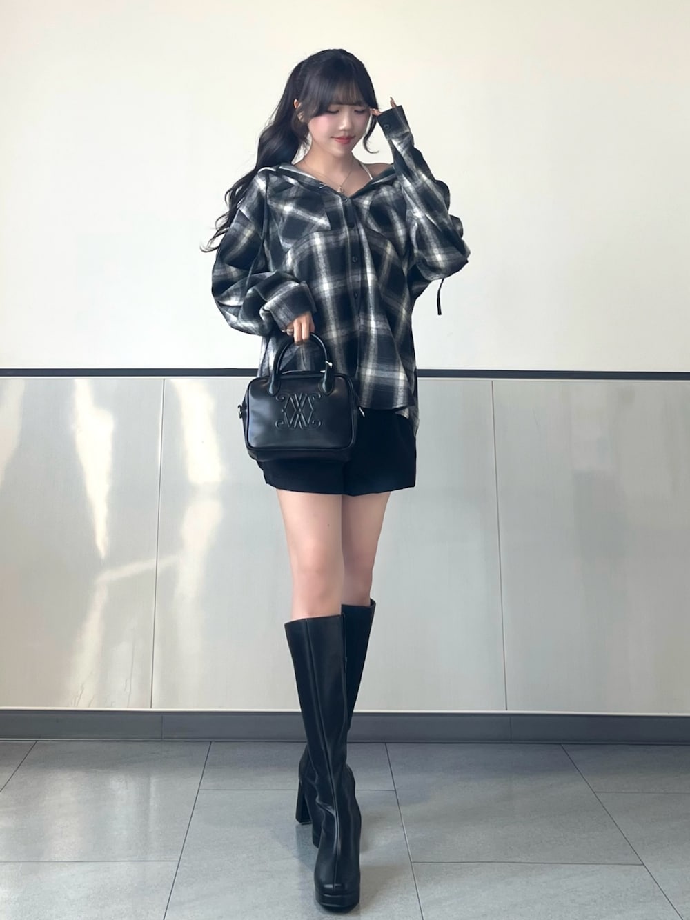 manaka(INGNI イオンモール高崎)のシャツ/ブラウス「フードビッグチェック柄シャツ」を使ったコーディネート