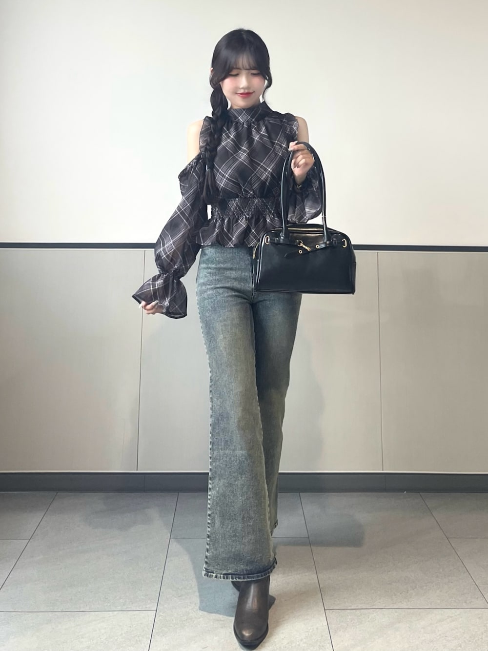 manaka(INGNI イオンモール高崎)のシャツ/ブラウス「2Wayリボン肩あきブラウス」を使ったコーディネート